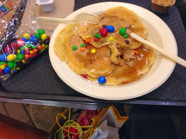 treat. Couldn't resist sprinkling my pancakes with some dark chocolate,